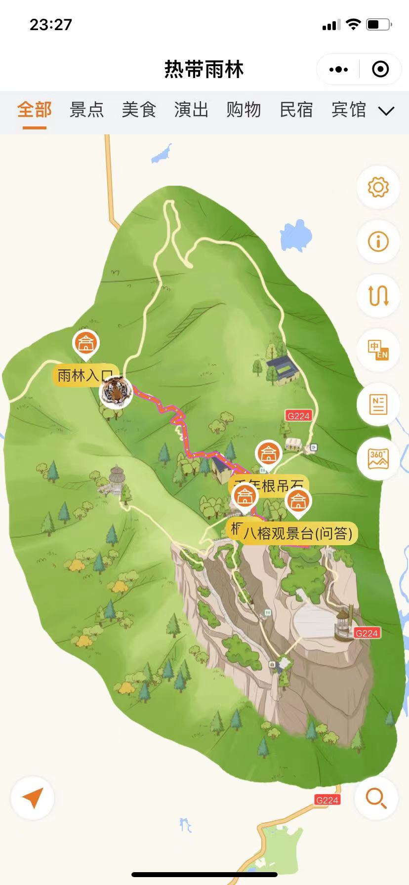 设计师为景区量身定制的手绘地图,可展示景区全貌,细节逼真丰富,生动展现景区风情特色,并在地图上显示景区内各个景点、道路、山势地形以及公共厕所、停车场、游客中心等服务设施。地图支持双指缩放,可放大查看细节,让游客快速了解景区。