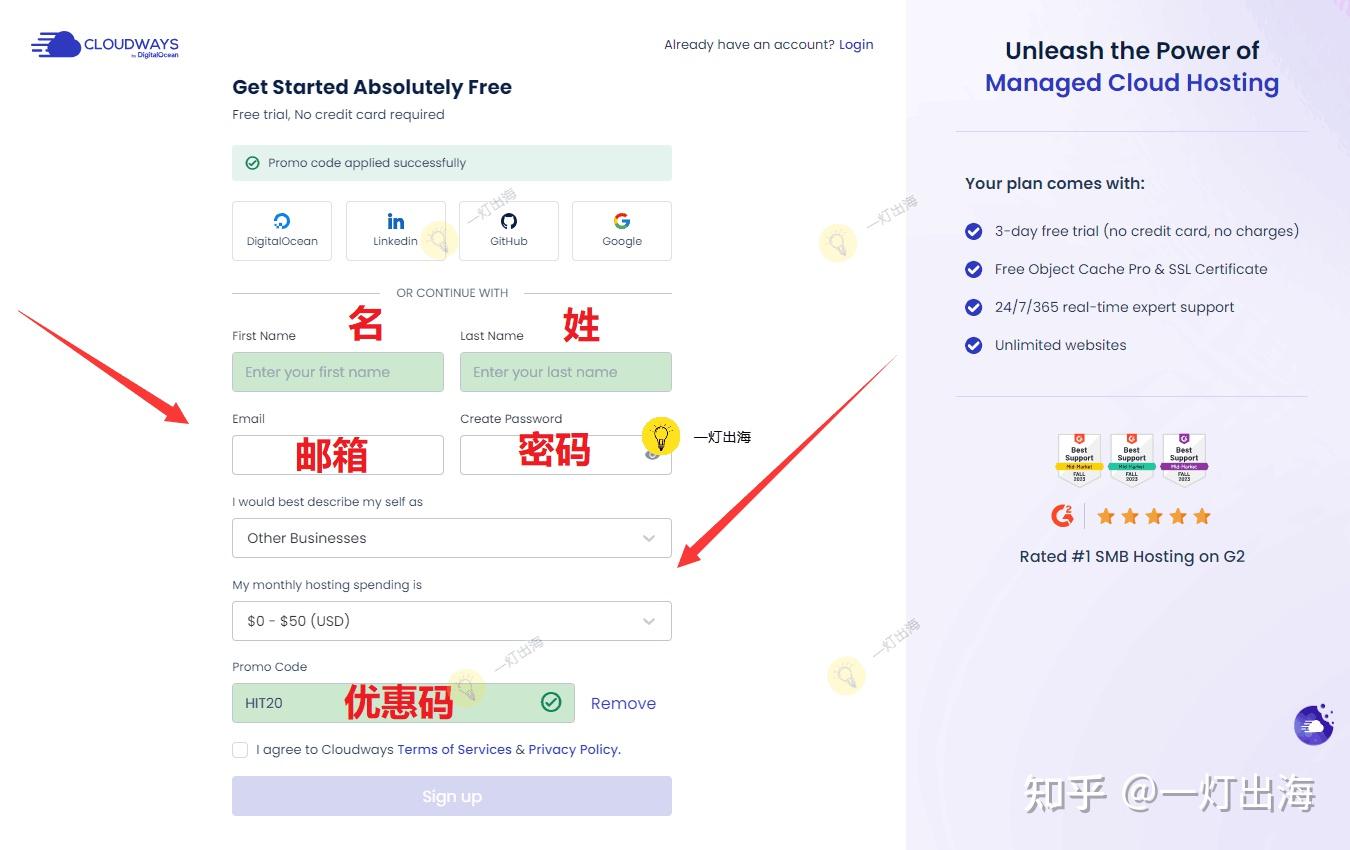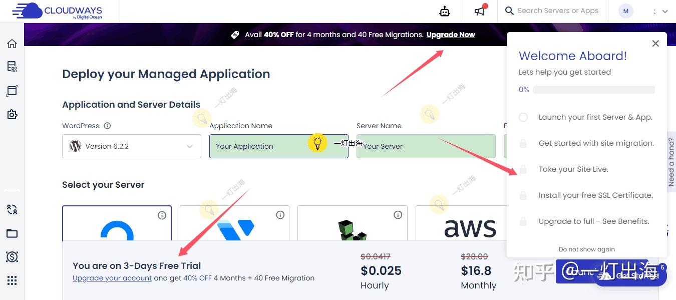 直达 Cloudways 注册 » 已被 Cloudways 官方加入白名单,可以帮你绕过个人身份资料审核认证,一旦有促销还会自动响应最高折扣,平时是三天免费试用和前三个月 30% 优惠。