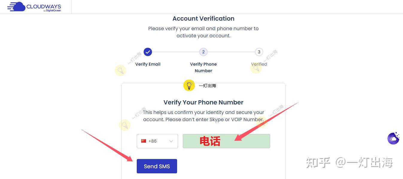 之后来到一个新页面,要求你验证手机号,点击Send SMS发送验证码。