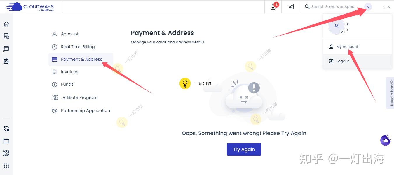 如果Payment & Address页面一直无法显示,也可以通过Paypal充值升级付费账户,写一封邮件到billing@cloudways.com,I want to upgrade my trial account to a full account using PayPal。