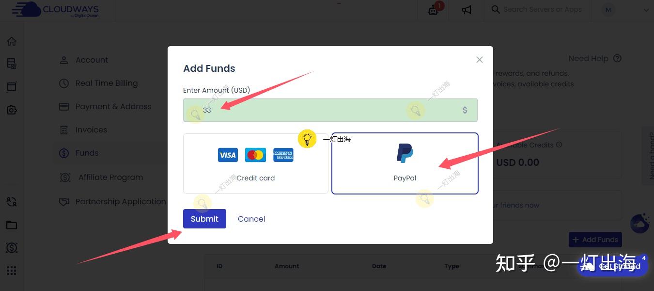 通过Paypal充值升级付费账户,一旦Cloudways扣完,则需要再次充值,以免导致网站停机。另外,Cloudways扣费是升级付费账户后的下个月的10号左右,不是立即扣费。