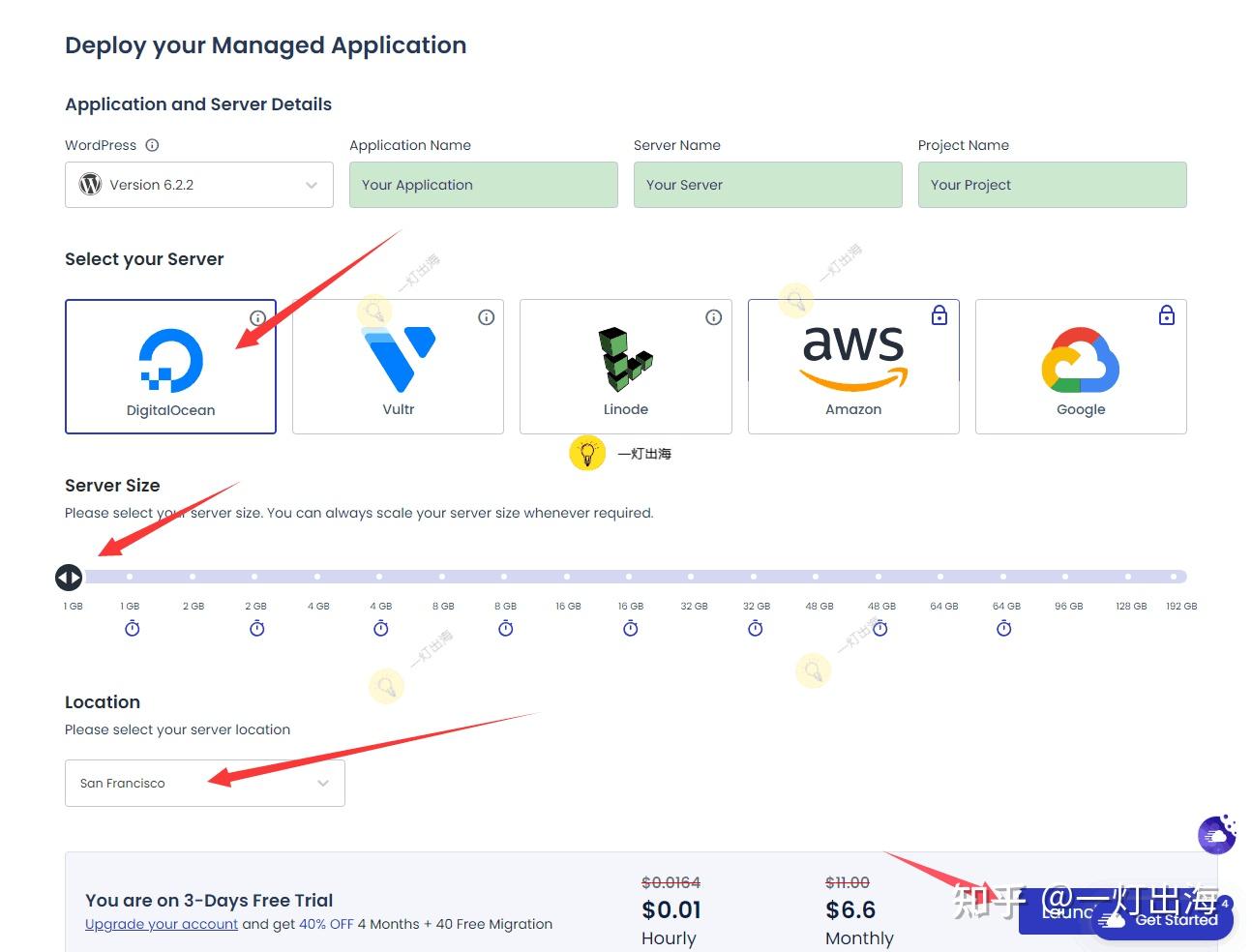 Cloudways一共有5种服务器可以使用,分别是DigitalOcean、Linode、Vultr、AWS、Google Cloud,价格最便宜的是DigitalOcean 11美元/月,外贸建站机房建议美国西部San Francisco。