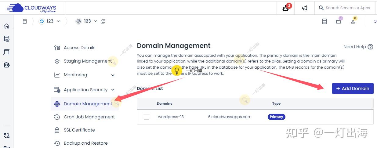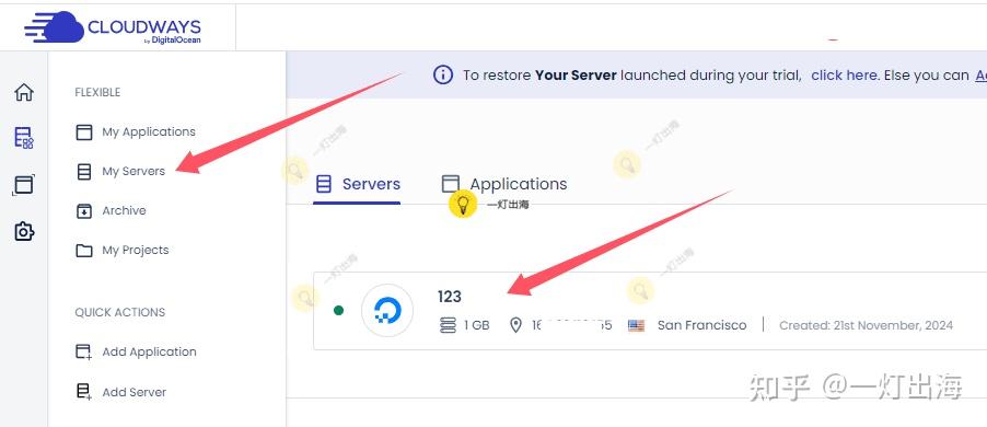 Cloudways域名解析只支持A记录IP绑定域名,查看IP地址,请转到My Servers。