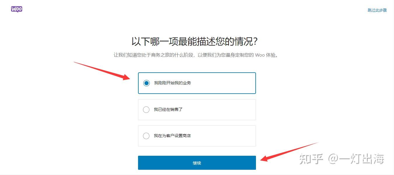 描述你的情况,选择“我刚刚开始我的业务”,然后点击继续按钮。