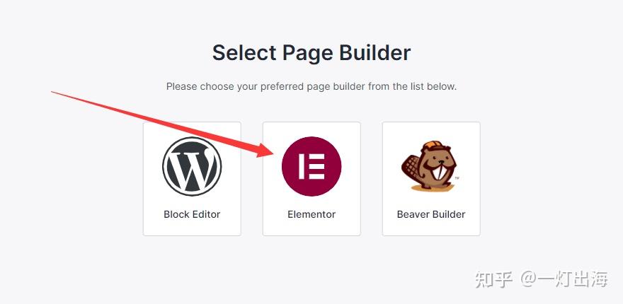 开始使用模板,需要选择页面编辑器。默认情况下,我们选择 Elementor。