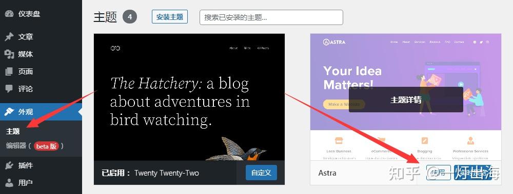 如果遇到 Astra 主题启用失败,可以返回主题选项,再次点击启用 Astra 主题。