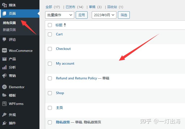 默认情况下,当你安装完 WooCommerce 和 Astra 主题及模板,这些页面会自动生成,你所要做的就是编辑修改它们,重要页面通常包括以下几种。